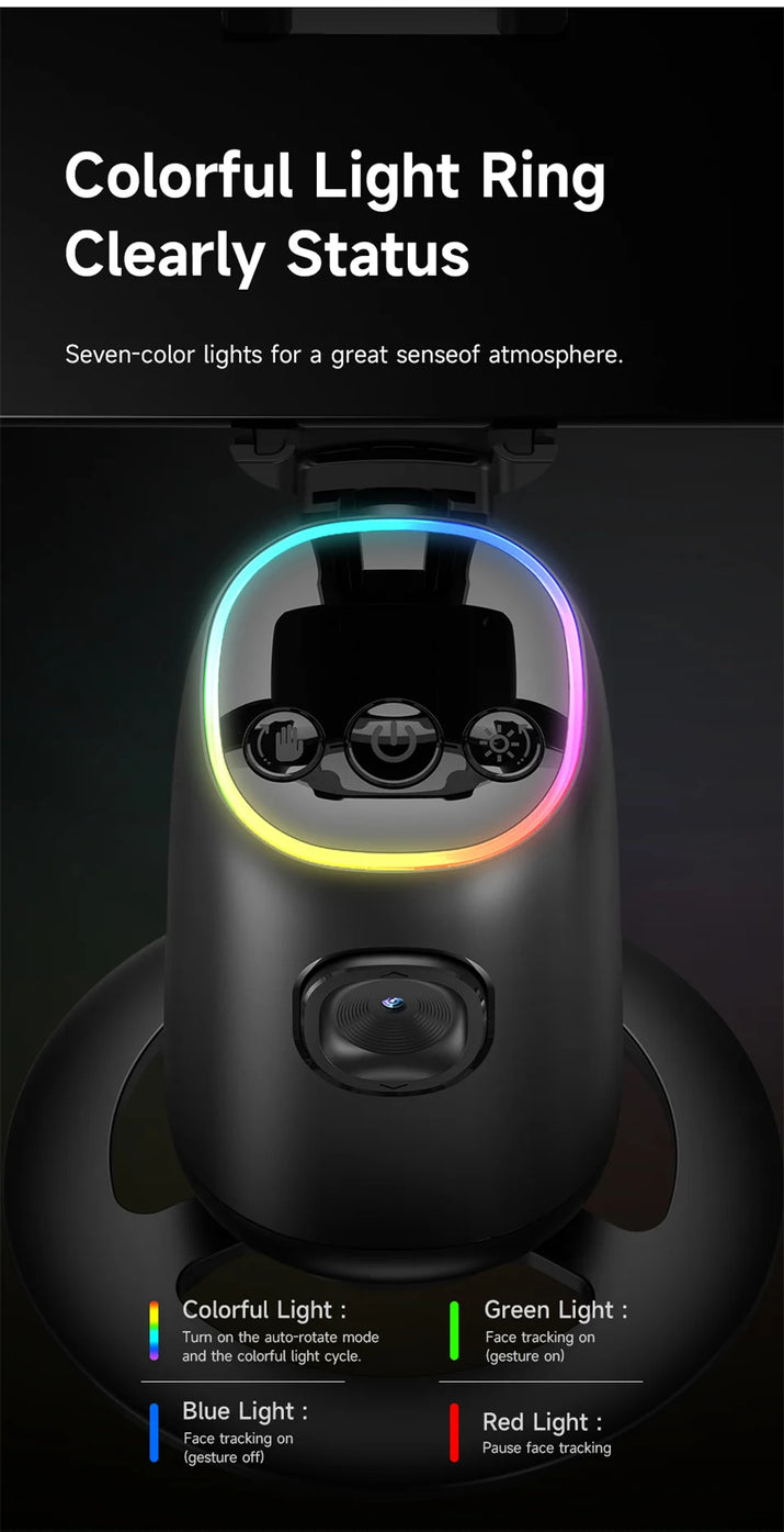 Answer 3: The 360° auto face tracking utilizes advanced algorithms to detect and follow your face automatically, keeping you centered in the frame while you move. This technology ensures smooth and stable shots, allowing you to focus on your content without worrying about the camera adjustments.